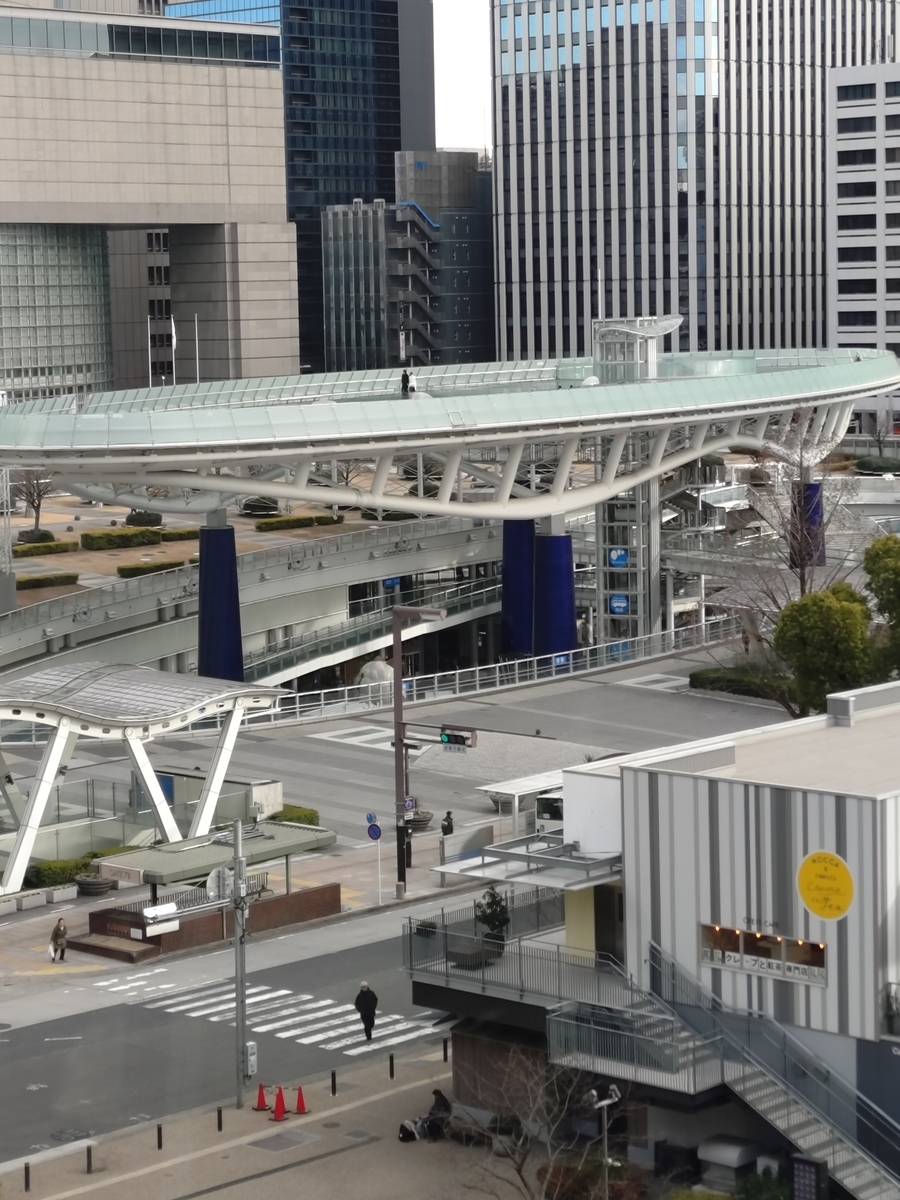 ミライタワーから見えた、オアシス21「水の宇宙船」へ